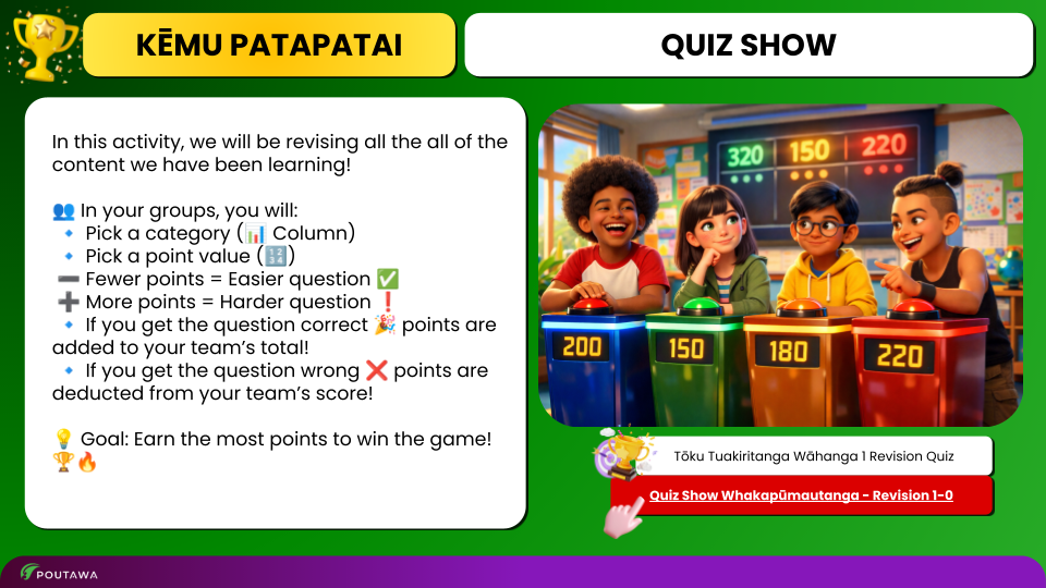 Structured lesson sequencing with ready-to-use slides and clear facilitation guidance for kaiako. Includes Ākonga instructions and content explanations aligned to the unit’s objectives and learning progression.
